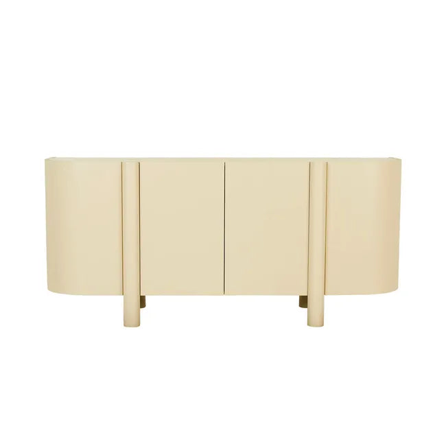 Sumptuous curves and interior room to accommodate dishes, serving pieces, and more are the distinctive elements of this elegant buffet ideal for any dining room. It sits on 4 slender legs and has sleek cupboard fronts that open to reveal the spacious interior.