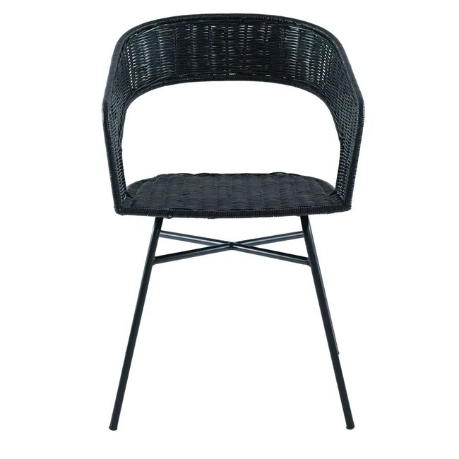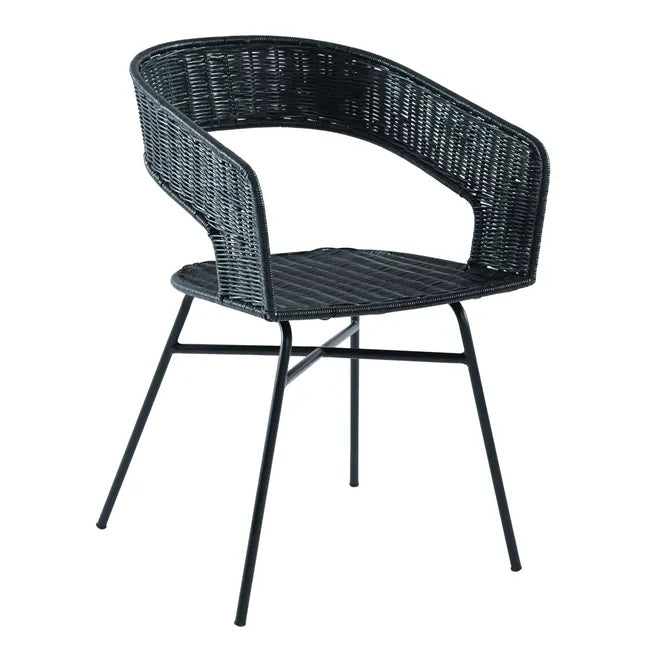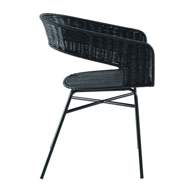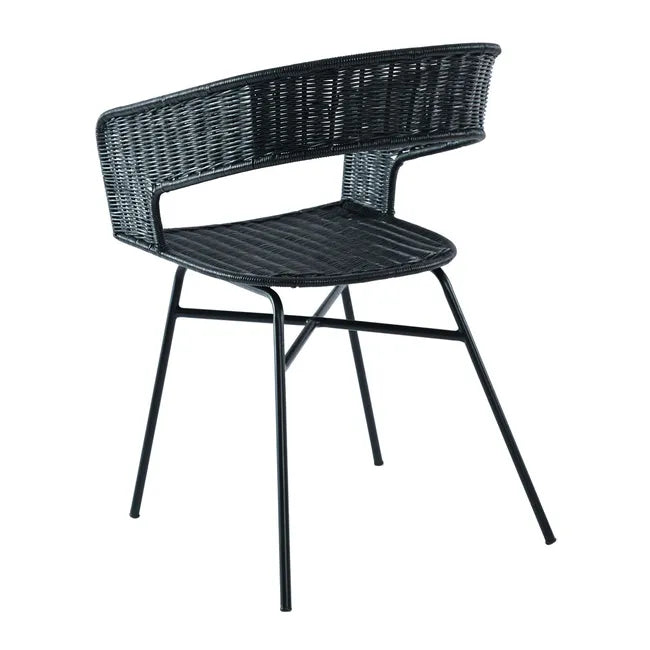 The Charlotte Dining Armchair seamlessly blends contemporary and classic design, featuring a modern black rattan weave that contrasts beautifully against a metal frame. With its effortless style and timeless appeal, this chair adds refined elegance to any dining space.