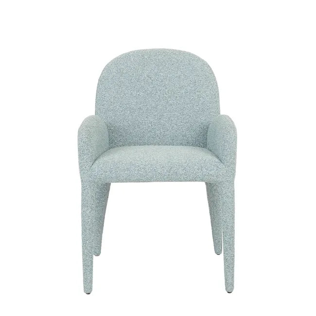 The Jules Dining Armchair features a pillowy frame and playfully curved back, offering generous comfort. This contemporary chair, perfect for modern dining settings, combines aesthetic appeal with practicality, ensuring a cozy yet stylish dining experience.