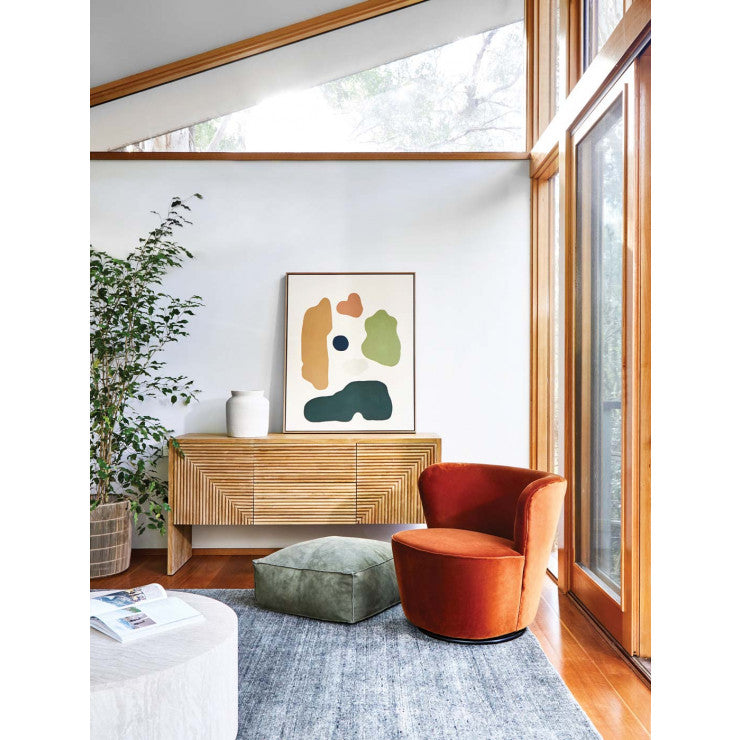 Bring your lounge to the next level with this stylish, upholstered armchair. It's a modern interpretation of the classic barrel chair with a low back and cutout base perfect for entertaining. This versatile armchair is great for smaller spaces.