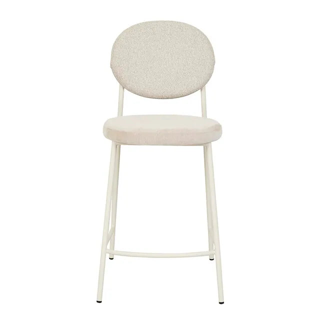 The Laylah Loop Barstool is a simple yet stylish piece featuring a comfortable upholstered seat and back set atop a sleek metal frame. The U-shaped footrest adds a final touch of comfort to this versatile barstool.