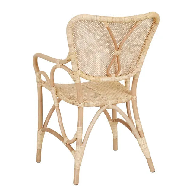 Embrace the relaxed charm of café style with the Luella Dining Armchair in Natural. Featuring a curved rattan design, this armchair offers both durability and a welcoming aesthetic. The woven rattan construction adds a touch of natural beauty, making it a perfect addition to any retreat-themed dining area. Its stylish design and sturdy build ensure it will enhance your dining space for years to come.