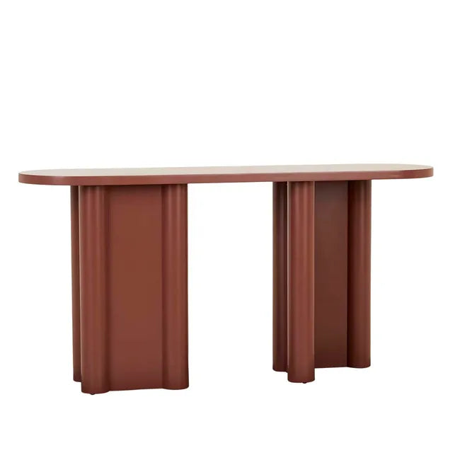 Command attention in an entryway with the stylish Magnus Console. It features a unique, asymmetric base and open-concept design. Perfect for defining a space, this veneer console table is a versatile piece for contemporary and modern interiors alike.