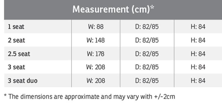 Do not place in direct sunlight, too close to a heater or air conditioner as it may cause rapid fading or dry out of fabric/leather. Never drag furniture along the floor as this can damage the legs. Rotate seat and back cushions regularly. Do not sit on the arms of your sofa’s. Only use recommended care products. Vacuum weekly to avoid dirt and body moisture build up. Minor spills – quickly blot with absorbent towel or clean with a damp cloth before it is absorbed excessively. For tough stains consult a professional cleaning company.