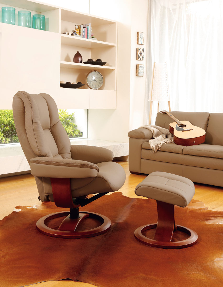The Nordic recliner from IMG offers unsurpassed comfort, high quality, and a truly Nordic design theme. The unique design with laminated wood yoke and construction frames made of solid steel ensures unquestionable comfort, stability, and long-lasting quality. The steel frames are covered with high resilience cold-cure moulded foam.