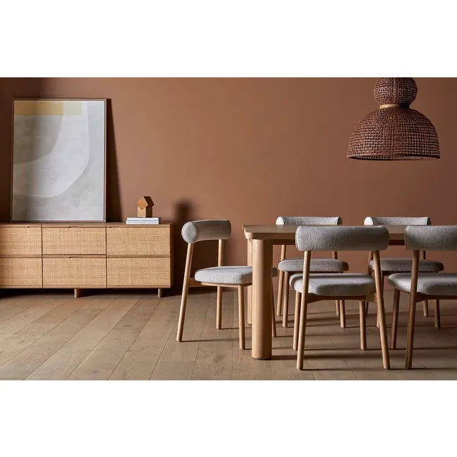 Mid-century modern Scandinavian-inspired style is alive and well on the Olsen Dining Chair. An upholstered seat and comfortable rollback offer support while the gleaming wood frame brings a natural touch to any setting.