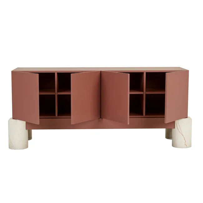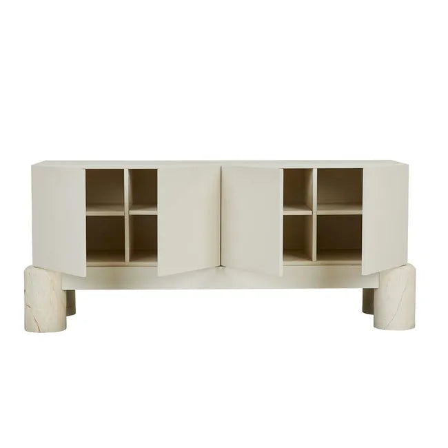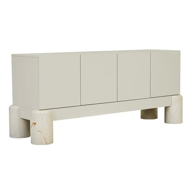 Make a statement with the impressive Pablo Buffet. Expertly crafted in veneer with solid marble legs. This buffet has a clean, minimalist look and it offers a spacious interior for convenient out-of-sight storage.