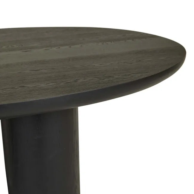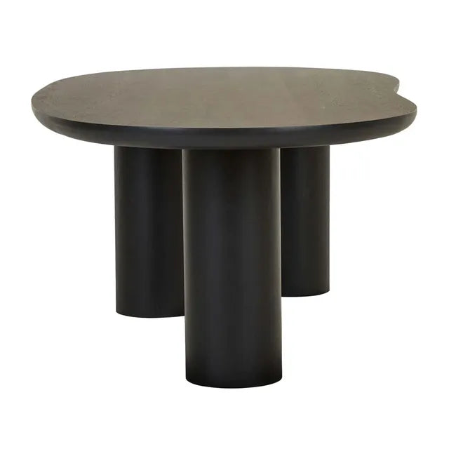 The Seb Curve Dining Table personifies elevated contemporary style with an organic top and three solid pillar legs. Constructed with oak veneer this sleek table is a statement-making look for any dining area.