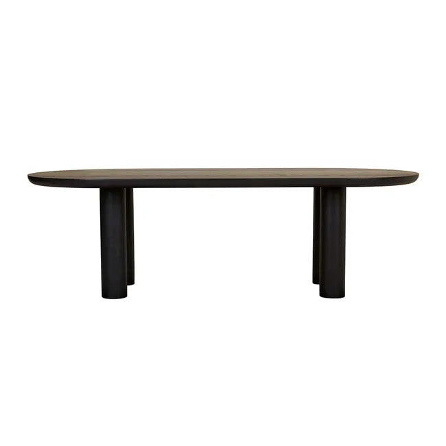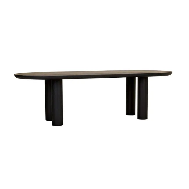 The Sebastian Oval Dining Table personifies elevated contemporary style with an oval top and four solid pillar legs. Constructed with oak veneer this sleek table is a statement-making look for any dining area.