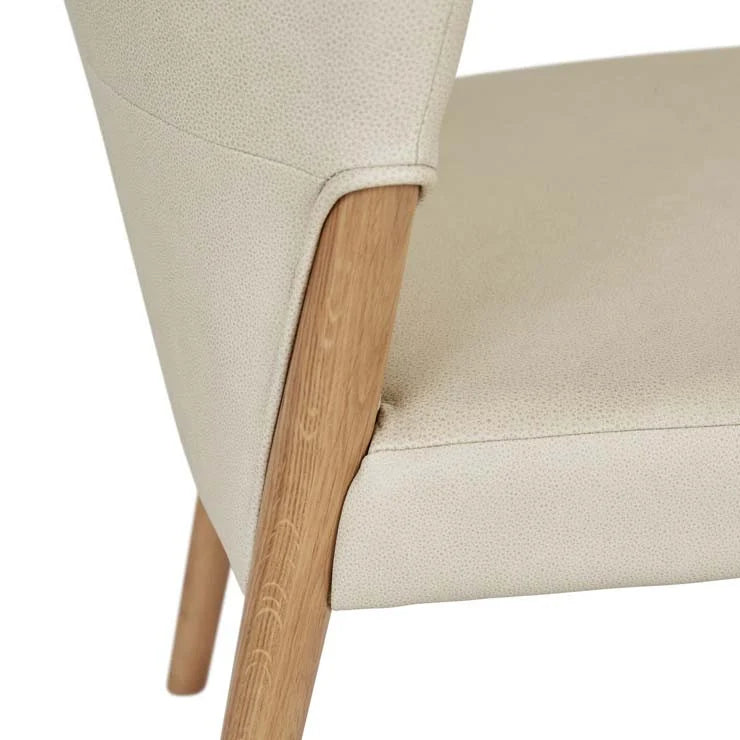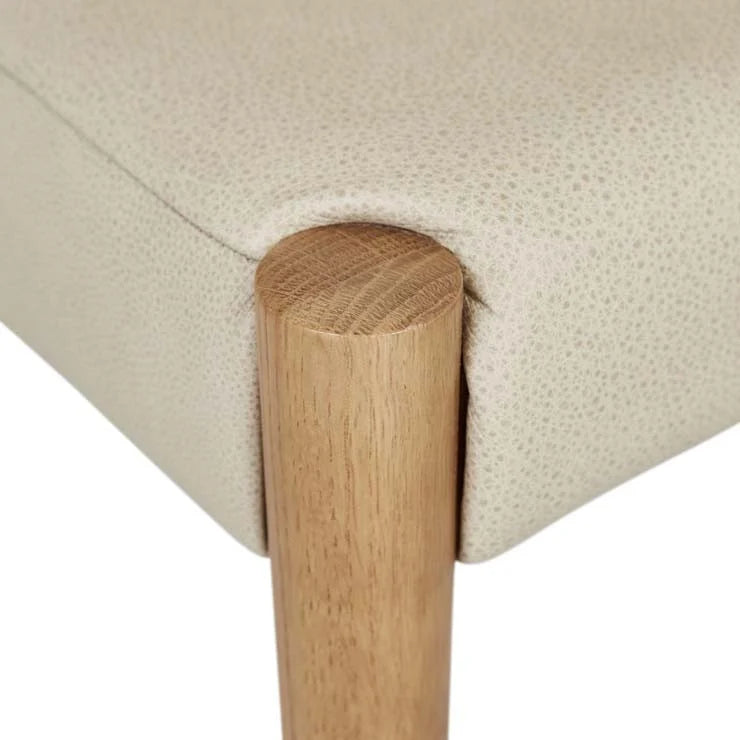 Crafted with a wood frame finished in light oak the Sketch Ronda Upholstered Chair draws on simplified mid-century modern designs for a bold look in a dining space. Its spare sleek style will add an unexpected element to many aesthetics.