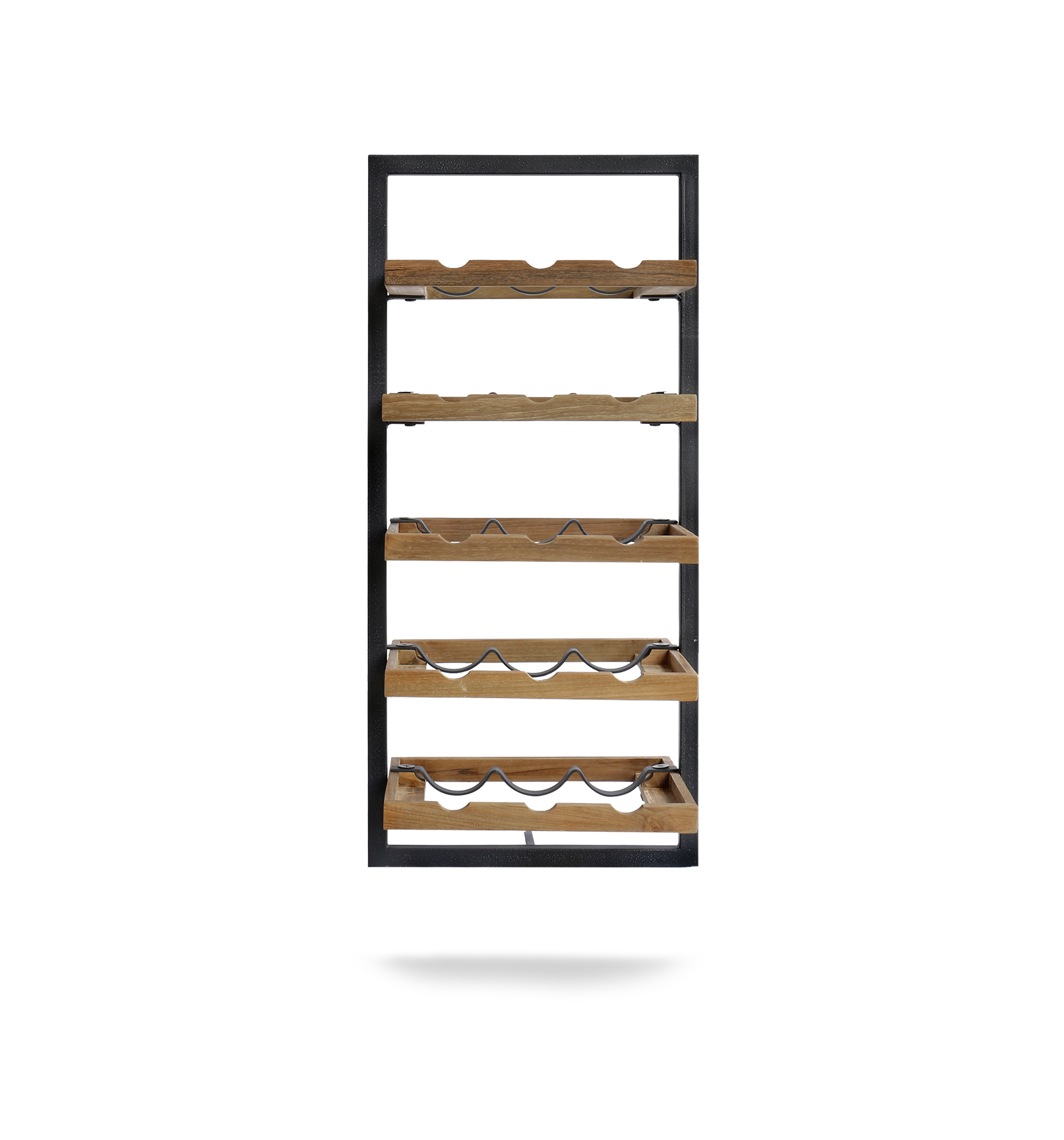 Designed to match with our Shelfmate shelving units, Winemate is a fun and stylish, not to mention, handy way to display your favorite bottles of wine. The wall wine rack is handcrafted from reclaimed teak and handwelded iron. Hang alone or combine with one of the other wine racks or Shelfmates.
